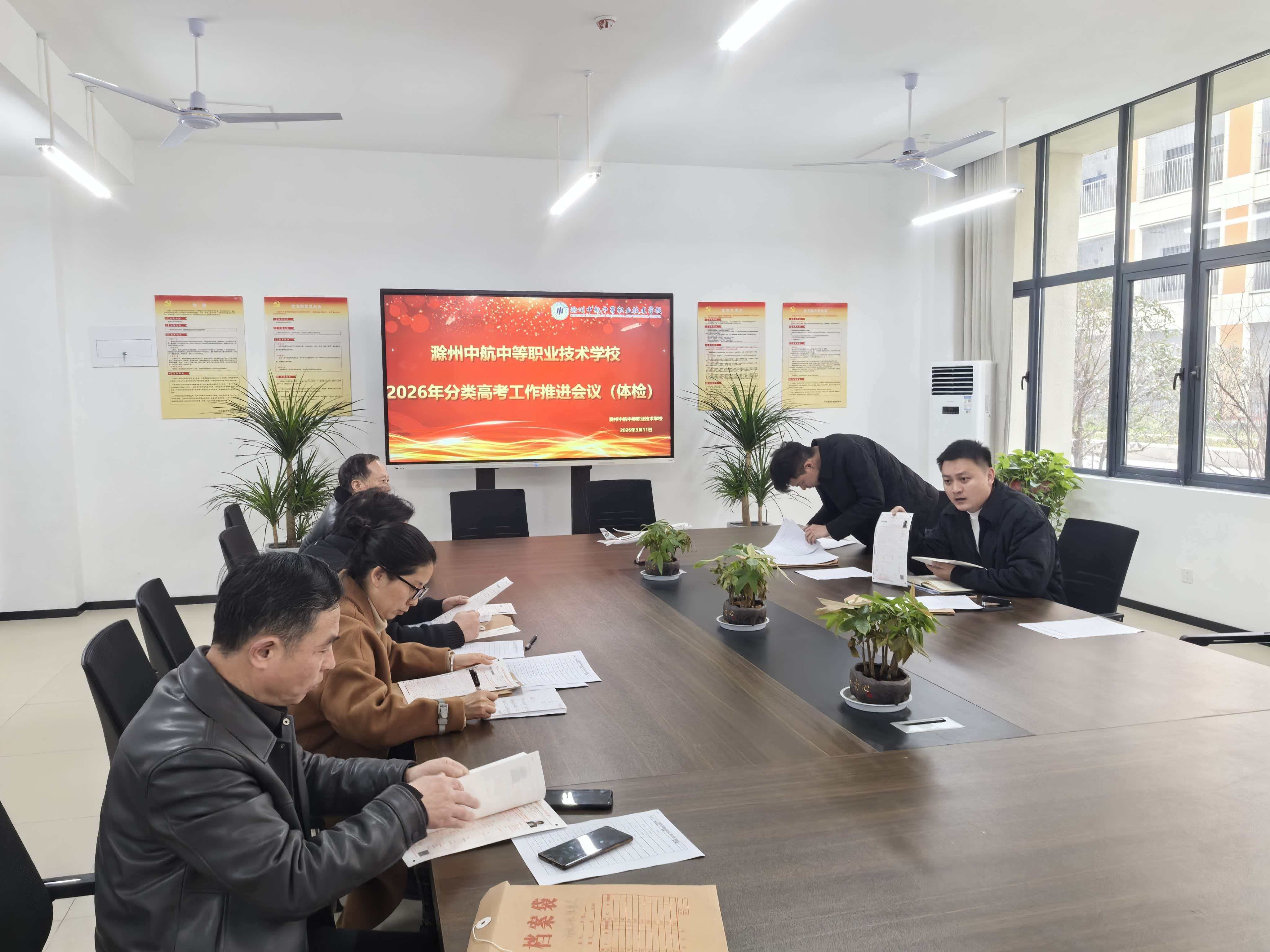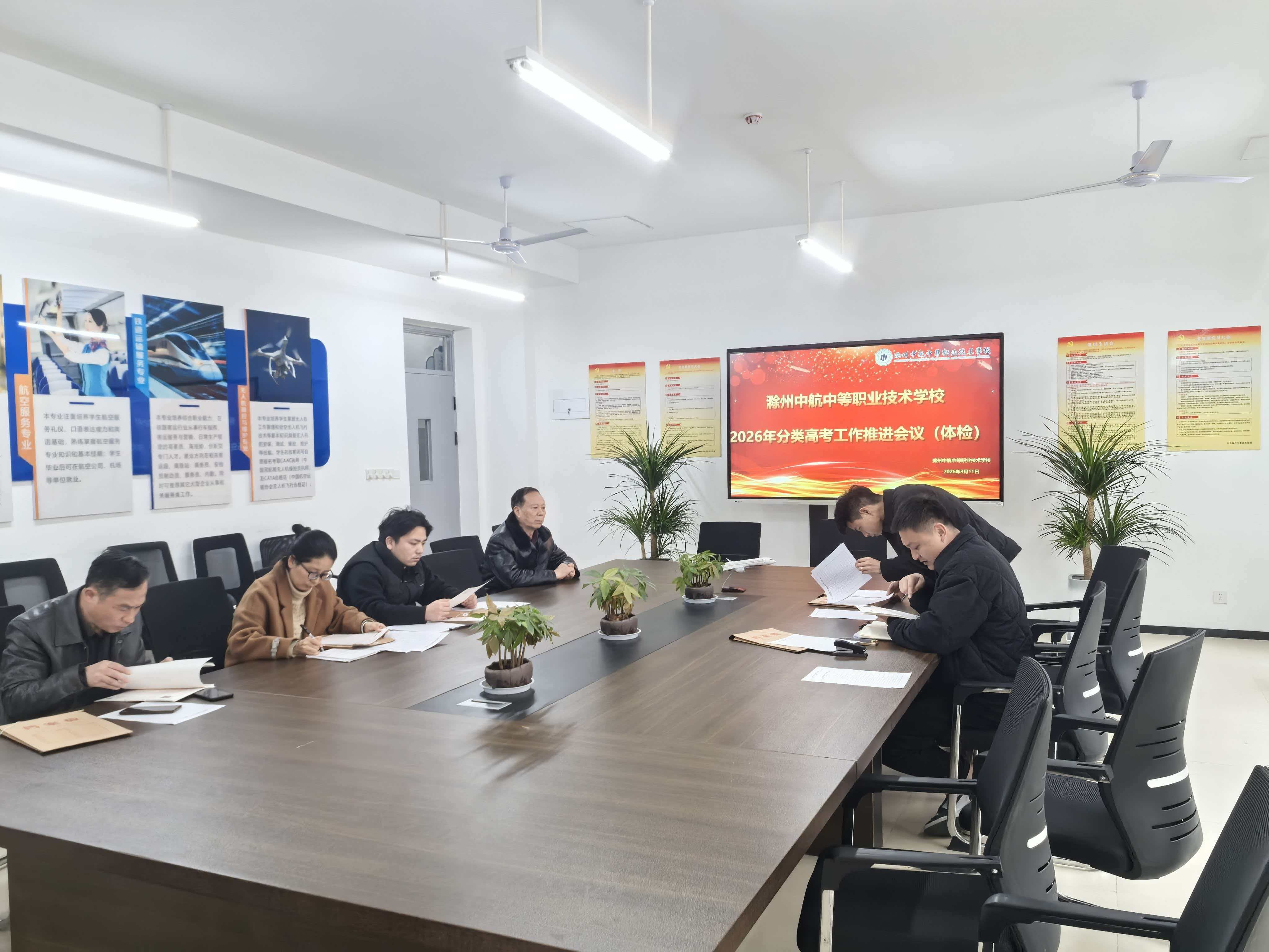 春满丙午年,策马启新程。在这春意渐浓的时节,为确保本年度分类高考工作平稳、有序推进,我校教务处于2026年3月11日上午,组织召开了“2026年分类高考体检工作推进会”。会议由教务处范杰处长主持,陈国川科长及全体体检带队老师共同参加,为即将到来的高考体检工作凝聚共识、周密部署。