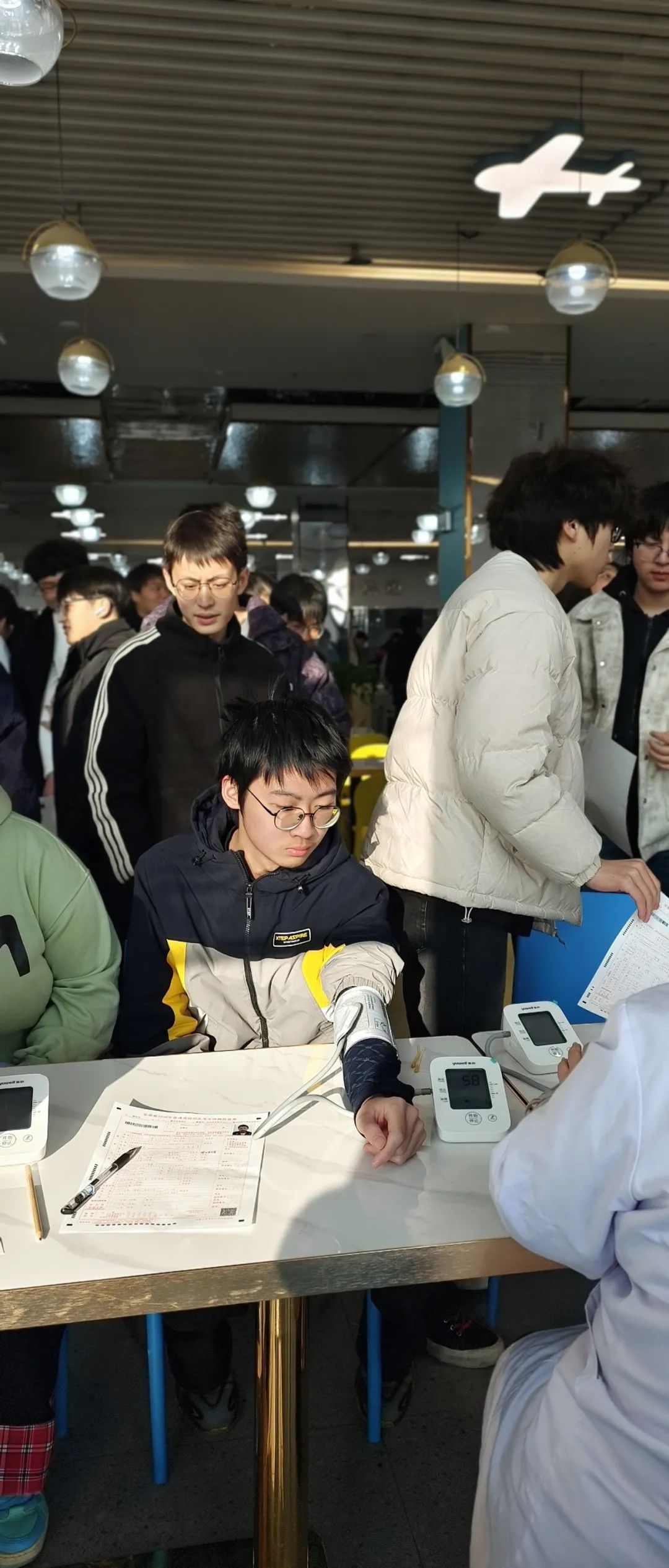 在各班班主任的精心组织与带领下,同学们安静、有序地前往指定地点。队伍整齐,神情专注,一张张年轻的面庞上,有对流程的认真,也有对未来的憧憬。体检站内,采血、测视力、内外科检查……项目虽多,却忙而不乱,展现了2023级学子优秀的纪律与素养。