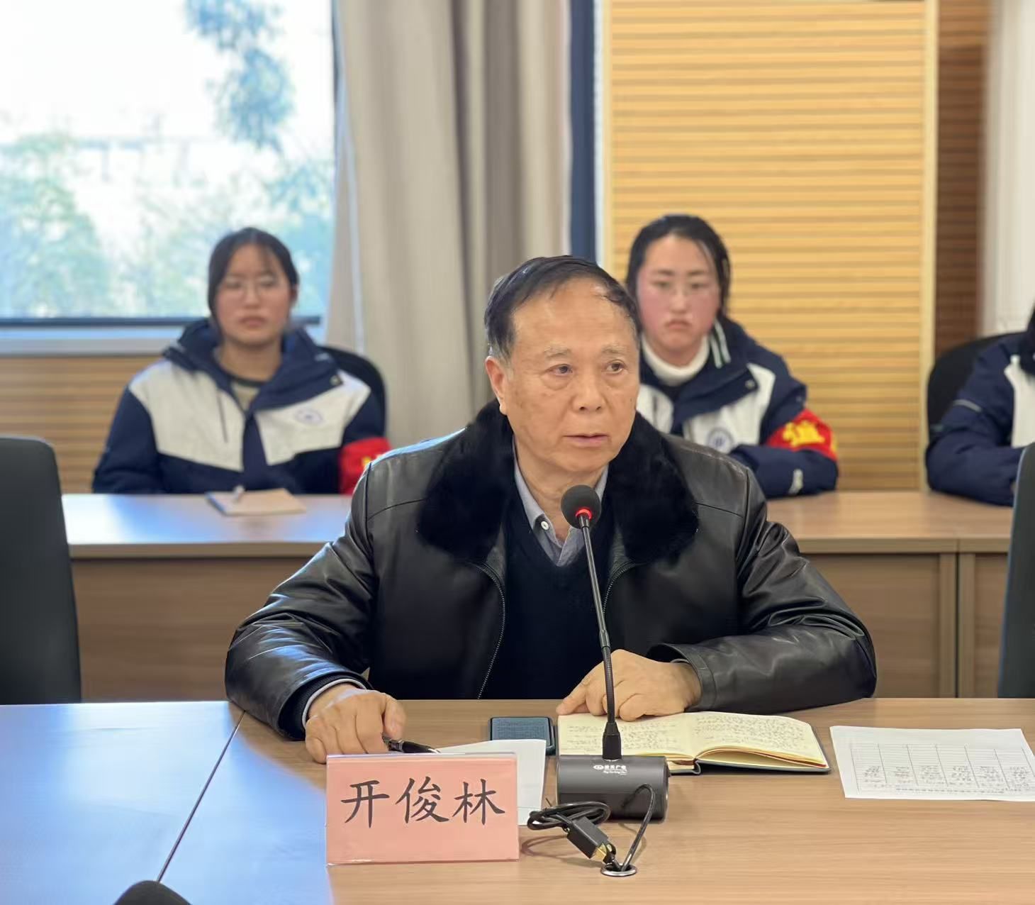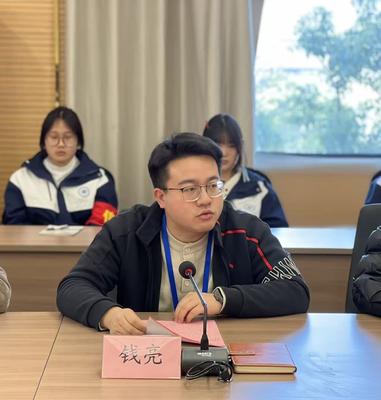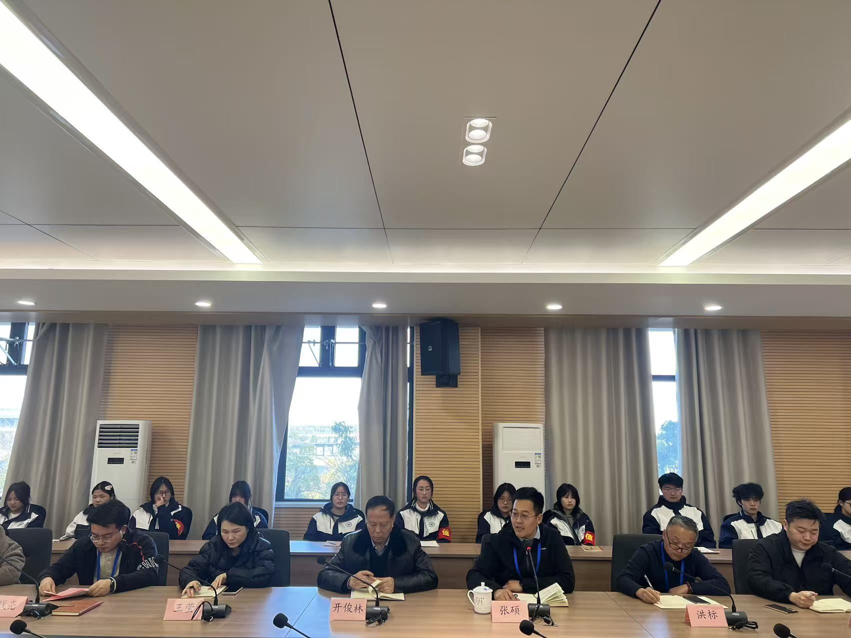 会议结束以后,学生科科长钱亮和团委干事方慧洁又举行了干部座谈会并代表学校进行发言!